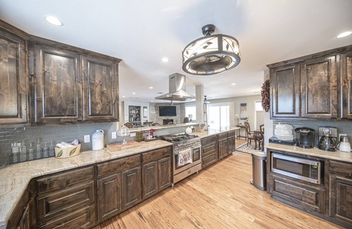 Located on a corner lot directly across from the cabin frisbee park there’s plenty of parking around the home and in the driveway. A spacious backyard with covered patio allows for outdoor entertaining and grilling. Feel free to enjoy the kitchen it is a quit with anything you need to prepare gourmet meals there’s seating inside for up to 15 as well as plenty of room for outdoor entertaining. The master shower contains a steam room you can set to 120° it’s extremely relaxing after a long day of work whether business or pleasure brings you to Midland this house is sure to provide relaxation and sanctuary enjoy your stay.