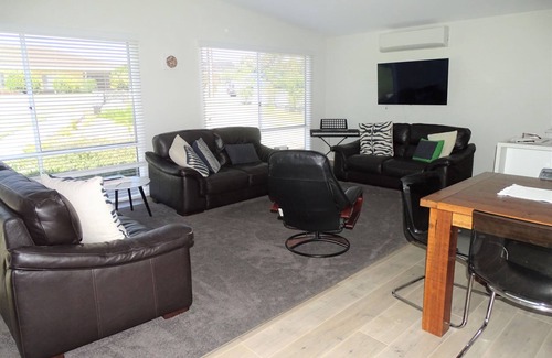 PROPERTY DETAILS: 3 bedrooms - queen, 2 single, queen. Sleeps 6; Quilts and pillows provided – BYO sheets, pillowcases, towels, bathmats & tea-towels OR optional linen hire $110 available through Country Getaways office; optional linen service fee $50 for beds to be made up. Main bathroom with bath & shower; Separate toilet; Ensuite bathroom adjoining queen bedroom with shower & toilet. Reverse cycle split system air-conditioning in all bedrooms; Ceiling fans in bedrooms; Reverse cycle split system air-conditioning in lounge room. Large smart television with USB port in lounge room; Queen bedroom has large television with USB port. DVD player; Blu-Ray hard drive; Board games; WiFi for guests. Well equipped kitchen with gas stove, microwave, coffee machine (guests need to bring Nespresso-compatible pods), dishwasher & large fridge/freezer. Front load washing machine; Iron; Ironing board. Shaded outdoor entertaining & seating area with pergola; Hooded gas barbecue; Weber Q barbecue. Secure rear yard; Fire pit (guests need to bring their own wood & observe fire regulations); Fish cleaning facilities. Lawned area at front of house. 5 minute walk to beach. Off-street parking in driveway for 2 vehicles with room for a boat. Sorry, pets not permitted.