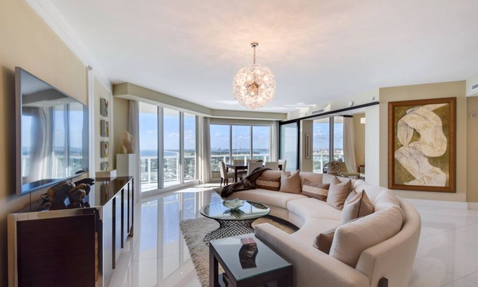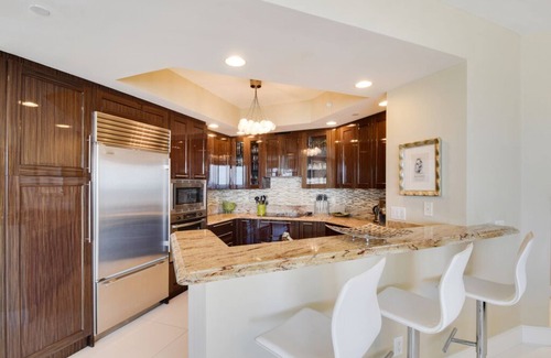 Spectacular panoramic views from this luxury condo on the 17th floor. Superb designer furnishings, artwork and luxury fittings in the latest Ritz Carlton development with Ritz quality facilities and amenities. This 2 bedroom (plus den), 2.5 bathroom unit has 180 degree views of the Atlantic Ocean, Palm Beach and the Intercoastal waterway. This spacious condo has a gourmet kitchen opening into a great room encompassing living and dining areas with a 70' 4k tv/dvd/cd/, den with tv and convertible sofa. The master suite has direct ocean views from your king bed, 65' flatscreen tv, luxurious master bath with 2 vanities, large jacuzzi and walk in robe. The luxurious second bedroom suite has a queen bed, views of the intercosatal waterway, full bath and walk in robe. The condo also features 9'4' cieling heights, a maytag laundry room, marble and glass tile floors, granite countertops and Bosch and sub-zero appliances.