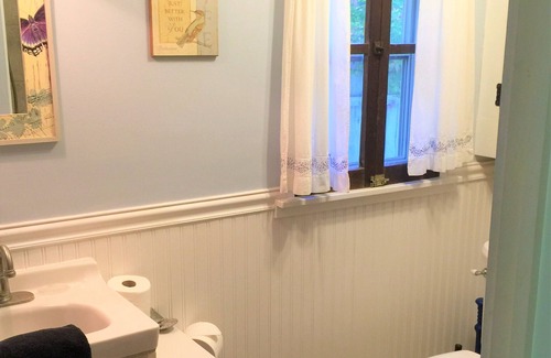 All household linens are supplied and there is on-site laundry available for your use, making easy work for families. Bring less - play more! Amenities include a new over-sized tiled shower with double "rain" shower heads. Cable TV with VCR/DVD/CD and complimentary wireless Internet service. Our large lending library of books, puzzles, games and videos is always available for our guests use. Just bring along your favorite DVD's. A year round accommodation, the cottage is centrally heated and air conditioned for your comfort.