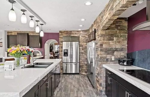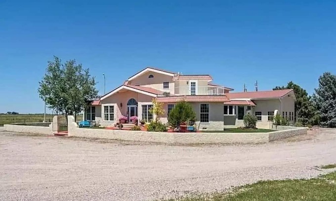 River View Ranch is The Premier in Scottsbluff County! Sleeps 25+ On 10 acres w/ private lake. Pool table, Infinity game table, & poker for adults. Kids have their own game room w/ corkscrew slide, ping pong, foosball & shuffleboard. Basketball/volleyball courts on property. 2 lg living rooms w/ couches that sit 10 each. 2 Kitchens: 4 ovens, 3 dishwashers & lots of ref/freezer space for a family reunion or party. 1 mile to gym, golf course, hunting, fishing, canoeing, kayaking & the zoo.