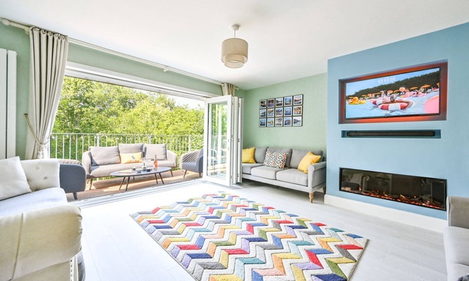 River View Retreat is an upside-down house. On the first floor is the open plan kitchen diner, lounge, snug, shower room, utility and WC. The lounge diner includes a range style cooker, dishwasher, fridge freezer, coffee machine, and a large dining table that extends to seat 8. The lounge has beautiful sofas which comfortably seat 8 guests, a 43" 4KHD TV with sound bar and bi-fold doors which open out onto the balcony which is furnished with soft seating and overlooks the mature trees in front of the house. Off the lounge is a cosy snug with 32" Smart TV with DVD, perfect for when teens wish to escape to their own choice of TV. Lastly on the top floor is the modern shower room with an electric shower, WC and wash hand basin.