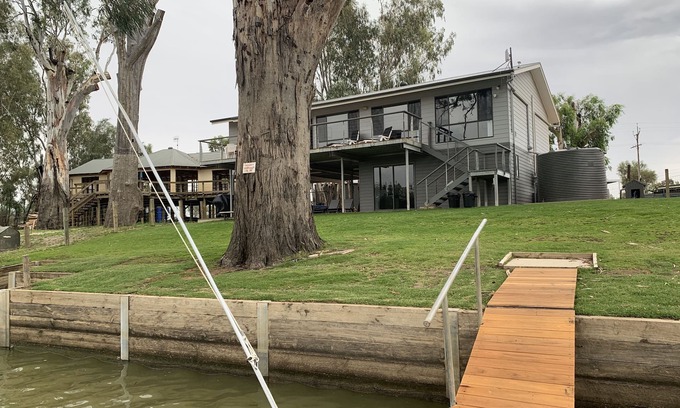 Beautiful property! Creating wonderful memories! Arguably one of the best views on the Murray River. Importantly facing east so you are not looking into the afternoon sun. Bush views opposite and cliff views across the water to the south.