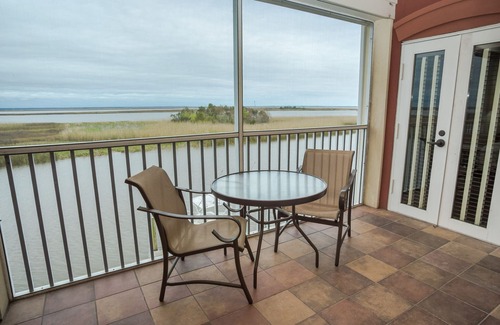Perfect Riverfront location! Fish In/ Fish Out- have your guide pick you up at your front door for an adventure in the River, Bay or Gulf! Fishing not your interest? Then walk to the finest restaurants, great shopping and museums in Historic Apalachicola.This privately owned unit in the premier waterfront development of Water Street Hotel offers a 3rd Floor View of Sunrise and Wildlife. This condo has a King Bed Master suite and the 2nd bedroom has BUNK BEDS with a private full bath. There is also a convertible sofa in the living area, a Screened Porch, Fully Appointed Kitchen. Week long and month long stays are available. 10% Tax and Cleaning Fee paid by guest.