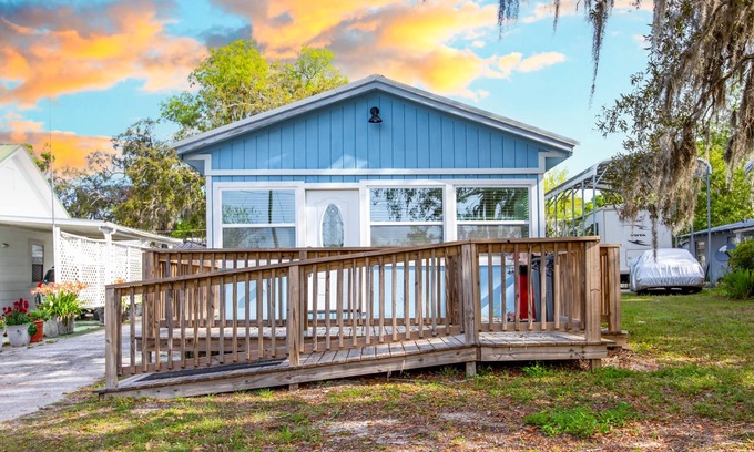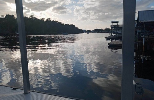 Enjoy the beautiful Florida weather from the spacious deck with ramp, perfect for grilling your fresh catch and watching the boats go by. The cottage is located in the golf cart community, within walking distance of the park, close by 2 marinas, and several restaurants. Watch the firework show right from your porch or walk to the Fiddler Crab Festival.