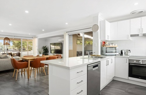 Wake up to stunning river views from the luxurious master suite, or enjoy the inviting open-plan kitchen, living, and dining area that flows effortlessly to the outdoor entertaining spaces. Fully equipped with a well-stocked kitchen, dishwasher, coffee pod machine, and highchair, the home caters to every guest's needs. Comfort is guaranteed year-round with reverse cycle air conditioning throughout and freshly painted crisp white interiors.