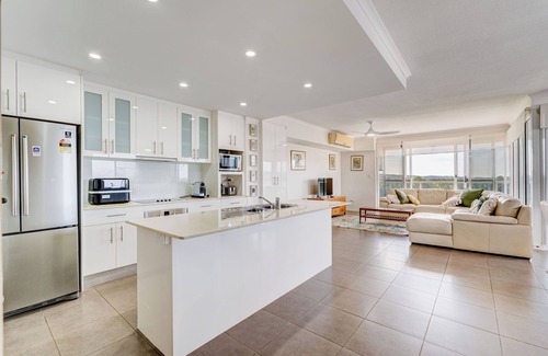 This stunning penthouse apartment offers riverside luxury with panoramic views of the Johnson River from every room. It accommodates up to six guests in its 3-bedroom layout. It features open-plan living with floor-to-ceiling windows, a spacious master bedroom with ensuite, and a patio perfect for alfresco dining, complemented by amenities such as secure parking and WiFi, and is located moments from Innisfail’s cafes and shops. The well-equipped kitchen with coffee machine, dishwasher, Air fryer is a joy to cook in.