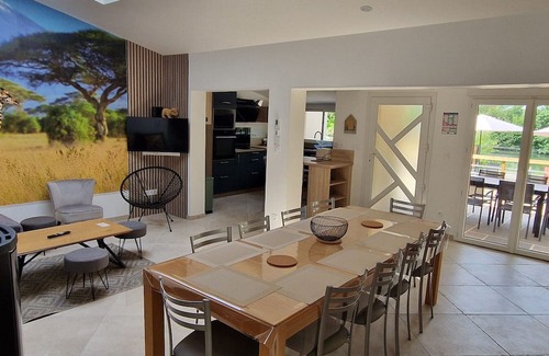We have a large laundry room with a washing machine and dryer, and games on site (badminton net and racket, Molky, adult and child pétanque set, wooden shuffleboard, beach racket).