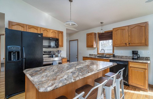 Escape to this serene 4-bedroom, 2-bath getaway, just steps from the Greenway. Ideal for biking, walking, and riverside adventures. Enjoy fresh, modern decor, cozy living spaces with smart TVs, a fully equipped kitchen, and high-speed internet. Just 5 minutes to downtown Grand Forks and East Grand Forks, 10 to the University of North Dakota, and 30 to the Grand Forks Air Force Base—it's perfect for work or relaxation. Unwind, explore, and feel at home at the Riverside Retreat.