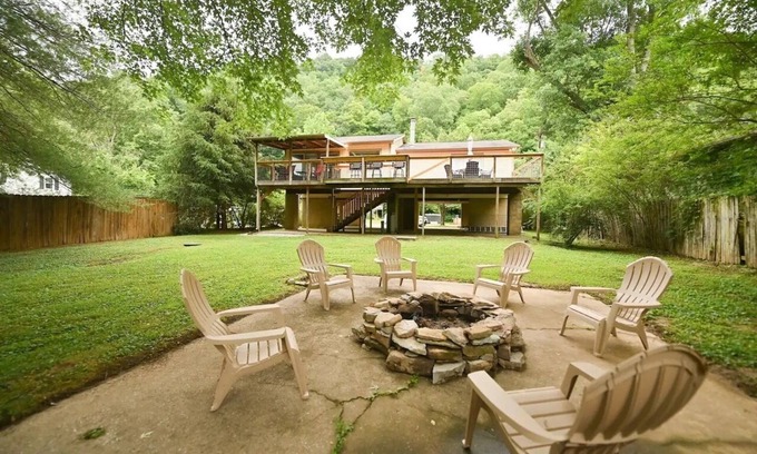 At Riverside Roost you'll find a cozy home completely on piers (enitire house is on 2nd floor) offering a great view of the Kentucky River right behind the fully fenced in back yard. A huge deck overlooks the back yard with a large stone fire pit ready for s'mores with family, friends and pets . Inside you'll find a cozy living room with a gas fire place, a full kitchen and 2.5 bed rooms. Kids will love the bunk room. Please let us know if you have any questions about the house or area. We are here to help!
