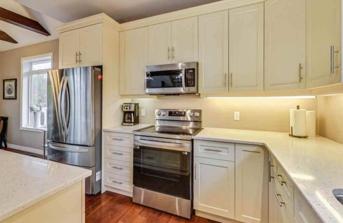 Fully equipped kitchen with fridge, stove, microwave, dishwasher