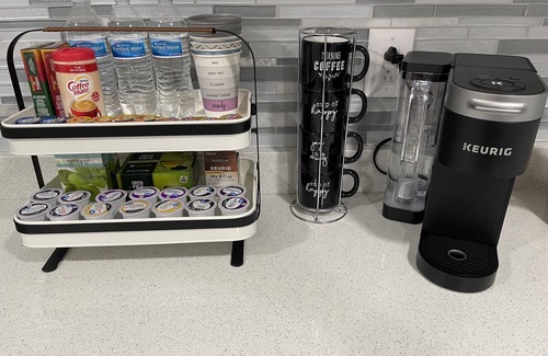The 1st room has a full size bed, full futon, Smart TV, a three drawer dresser, and portable heater. 2nd room has a King bed, small collapsible 4 drawers storage unit, Smart TV, nightstands and bench. Full kitchen, modern bathroom with spa panel and a very large living room with lots of comfortable seating areas. We also have a roll away bed which would need to be requested. The laundry room is a shared area and the only area we will enter during your stay. We welcome you to use the washer and dryer however we ask you check your pockets for paper, tissue, coins, money and pens.
