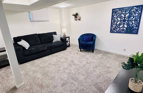 Welcome to our suburban haven, just minutes from the Chiefs and Royals stadiums. Recently renovated, this listing offers a cozy living room with a pull out couch, large TV and complementary Netflix.