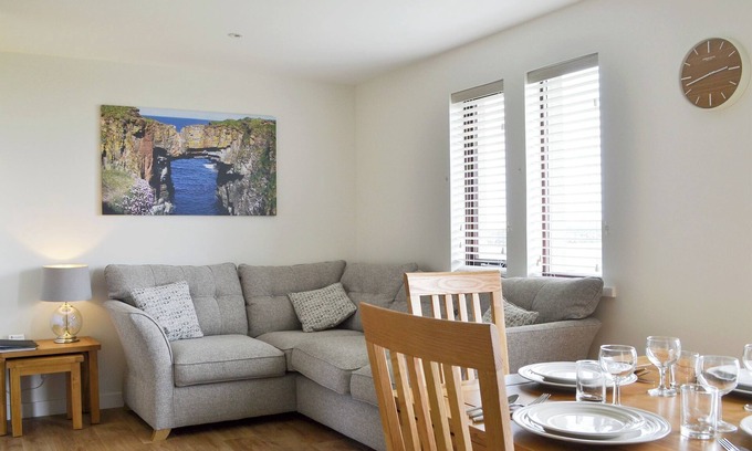 With stunning sea views, this semi-detached chalet is the perfect base for a relaxing holiday on the Orkney Islands.. 2 steps to entrance.