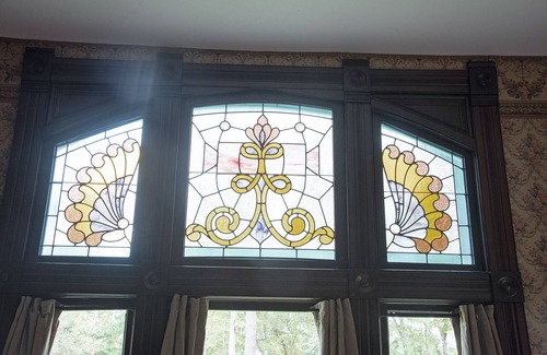 Relaxing and quiet, the 1901 Victorian is a chance to step back in time. Original wood floors and staircases, giant pocket doors, and stained glass windows are only a few of the charms. Sneak up the back stairs to enjoy one of our three balconies. With seven wooded acres, drinking morning coffee and watching the deer is a great way to start the day. Grill outside or enjoy the modern conveniences of a full kitchen. The 1901 Victorian has central air and heat, a very large primary bathroom shower, secondary bathroom with a clawfoot tub, and plenty of comforts for a relaxing stay.