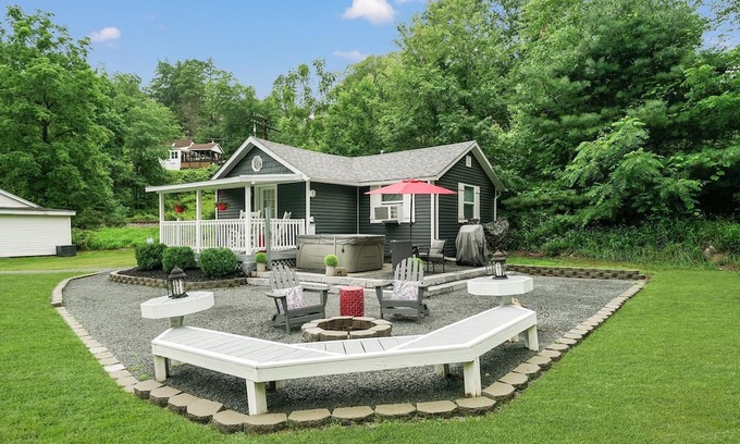 River Rail Cottage is located minutes away from historic Milford Pennsylvania, Matamoras, and Port Jervis. You will find great restaurants, breweries and entertainment close by. Our cottage is a 1 bedroom, 1 full bathroom cottage with full kitchen and living room. We are in a very quiet unique area where the Delaware River access is a short 2-minute walk away. The river offers fishing, Kayaking, rafting and tubing in the warmer months. We have a beautiful large swimming pool for our guests to enjoy. Other amenities for our guests include a private 2-person hot tub, fire pit and covered rocking chair porch, Free high speed internet, flat screen TV in the living room and bedroom and free on-site parking within a few steps of the cottage. Celebrating a special occasion? Let us know and we will make it happen!