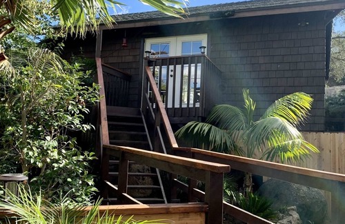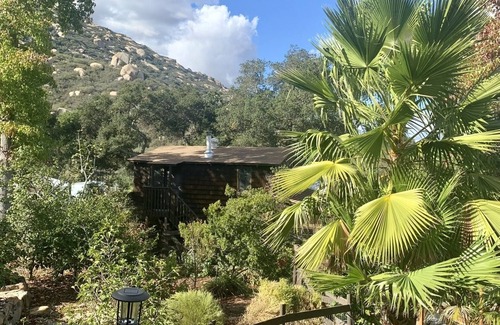 Come and enjoy a romantic & tranquil getaway at this 1930's mountain cottage at the base of Mt. Woodson. Located on a working Camellia nursery just yards away from Potato Chip Rock hiking destination trailhead. Other than hiking; your days can be filled with golfing, wine tasting or fishing at the local mountain lakes. Other popular destinations which are 30 to 45 minutes away including magnificent beaches, beautiful downtown San Diego, the Zoo, Safari Park, Sea World and famous Julian. The cottage can only accommodate two people: a king size bed in one bedroom with fireplace, a bathroom with powder room, a small dining area, a kitchenette and a patio overlooking Mt. Woodson. The property is supplied by well water and solar energy; has Wi-Fi, Smart Lock & Blink Security system camera/ doorbell. Street parking is available a few feet from the driveway entrance. The neighborhood is extremely quiet and safe. You will hear birds chirping in the morning & crickets chirping at night. This rural hillside neighborhood is just within easy driving to get to town: 5 to 10 minutes to restaurants, grocery stores, gas stations, antique stores & small shopping centers. This is not a child & pet friendly property. Lots of rocky pathways with stairs and wildlife. So sorry…. No kids or pets allowed.