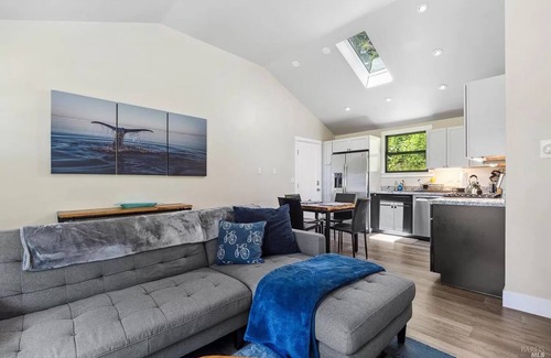 Wake up to a blue water view from bed!! This 1950's beach cottage has been fully renovated. The cottage, sitting on one acre, is on the tree line offering blue water views from the front of the house and Redwood trees in the backyard. The house is close to several beaches and restaurants and is a great romantic get away spot! The renovation offers new kitchen and bath with granite counter-tops and stainless steel appliances. All new furniture from Scan.