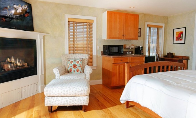 Romantic Queen Room with Balcony, Fireplace & Monument Views - Downtown Provincetown is located in Provincetown. Romantic Queen Room with Balcony, Fireplace & Monument Views - Downtown Provincetown provides accommodation, featuring Kitchen, Laundry, Air Conditioner, among other amenities. This Hotel features Kitchen, Laundry, Air Conditioner, to make your stay a comfortable one.
