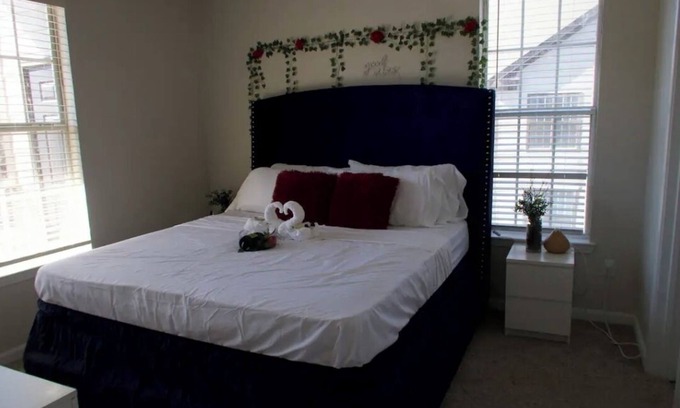 This Romantic Private California King Bed and full bath space is perfect for date nights and airport layovers. Only 4 miles from Hartsfield Atlanta Airport. We accept long term rentals as well. Minimum of 2 guest per stay. Free Netflix