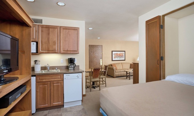 This intimate accommodation is perfect for couples getting away for a romantic weekend. There's a living room that features a queen Murphy bed and a kitchenette with a mini-refrigerator, microwave, and dishwasher.