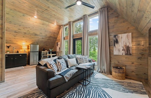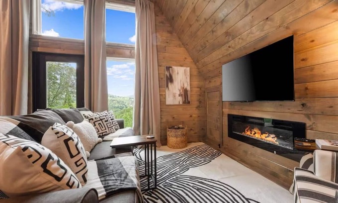Escape to this beautifully decorated, modern A-frame cabin—perfect for a romantic getaway. Perched above the breathtaking Parthenon and Little Buffalo River Valley, the cabin offers unforgettable Ozark Mountain sunsets, best enjoyed from the private hot tub. The serene beauty of the Parthenon Valley creates an atmosphere of peaceful calm that words can hardly capture. This thoughtfully designed cabin mirrors that tranquility, providing a cozy, stylish space that’s both relaxing and romantic. Inside, you’ll find spacious comfort and upscale amenities to make your stay effortless and memorable. Whether you’re celebrating a special occasion or just spending quality time together, this retreat is the ideal setting to reconnect and create lasting memories. Centrally located in the heart of the Parthenon-Jasper-Buffalo River region, the cabin puts you close to hiking, floating, and exploring all the natural wonders the area has to offer. After a day of adventure, return to the comfort of your private retreat and unwind in true mountain style.