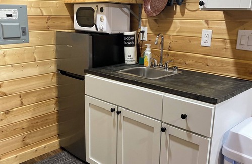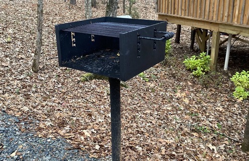 Reclaim the magic of childhood with a unique treehouse escape, blending whimsical charm and all the comforts of home. Ascend the ramp, punch in the code, and begin your treetop adventure. Inside, discover a cozy kitchenette (complete with fridge, Keurig, toaster oven, and microwave) perfect for preparing a romantic meal. Dine al fresco on the gas burners by the smokeless wood-burning fireplace, or share an intimate dinner at the table inside. Afterwards, snuggle by the gas fireplace in the living area and stream your favorite movies (no cable needed, just your Amazon Fire Stick). Indulge in a long, steaming rain shower! Finally, retreat to the comfy queen bed, gaze out the huge window at the whispering trees, and let the serenity wash over you. We provide a starter supply of essentials (toilet paper, paper towels, coffee, etc.), so you can focus on reconnecting. (P.S. We also have a tiny house on the property!)
