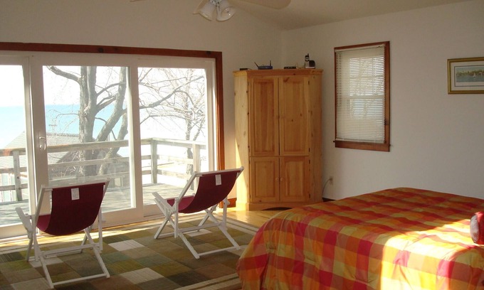 Located on the Chesapeake Bay side of Tilghman Island, our beautiful property is host to several cottages (one, two and three bedroom) that are available for rent throughout the year. The Bayside cottage is a 2-story cottage with a large bedroom on the 2nd floor with a huge deck and 180 degree views of the Chesapeake Bay. The sunsets are the best on the East Coast. The living area and full (small) bathroom are on the first floor. There is also a deck off the living area with a grill. The cottage is about 60 feet from the water. We have photos on our Tilghman-Landing website. STRN License 23-3