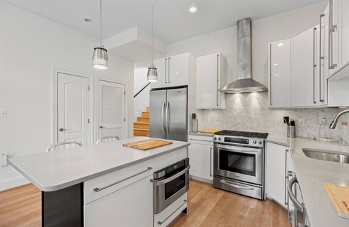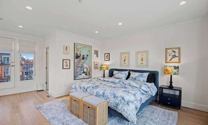 Indulge in luxury at our exquisite 3-bed condo in U St. Revel in not one, not two, not three, BUT FOUR! private outdoor spaces boasting breathtaking DC rooftop vistas. One block to Metro, upscale dining, and entertainment ensures an unparalleled experience in the heart of the city. Welcome to opulent urban living. Parking on premises is available by request. The unit is located on the top floor and has 2-3 flights of stairs to walk up, no elevator. The views from the roof are spectacular. This is a third floor walk up that has two flights of stairs that go straight up. You will be rewarded with this luxurious penthouse apartment in the middle of everything DC has to offer. Three separate bed rooms, 2.5 baths, and a roof deck with views of DC!