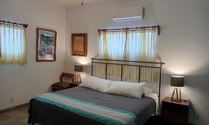 The six private rooms of the Hacienda de Palmas are spacious and clean. Most of the rooms are located on the second floor, and have their own individual style and decor. Each room has a mini fridge, new inverter style air conditioning, fans and bathrooms (with body soap, shampoo and conditioner), towels, etc.