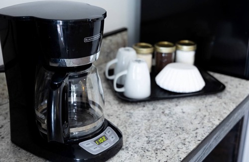 Room 9 at Inland in a Studio-Style with 1 Queen Bed. A small table and chairs provide the perfect laptop work space. This room has a hot plate, microwave oven and toaster oven for limited cooking. Cookware, dishes, silverware and some limited utensils are provided. The room also has a coffee pot, coffee, creamer and sugar are included. A small refrigerator/freezer is available for use. A tub/shower combo completes this room nicely. Perfect for limited or long-term rental.