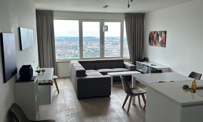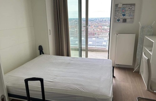 My stylish 2-bedroom apartment in the heart of Brussels! Located in a high-rise building, this modern space offers breathtaking city views that you can enjoy from the comfort of your room. Whether you're here for business or leisure, you'll find all the amenities you need for a comfortable stay. Just minutes away from top attractions, restaurants, and public transportation, our apartment is the perfect base for exploring this vibrant city. Your room comes with a comfortable queen bed and you have an access to all amenities in the apartment.