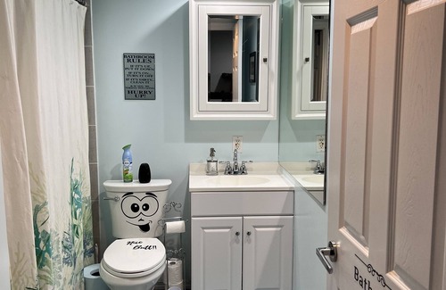 9. Please keep the washroom tidy, while you are staying, you will be the primary user, however, if I have friends over, they use that washroom as well. Also, please keep the toilet seat down, the cats will drink anything, they are disgusting. In fact, just keep the washroom door closed.
