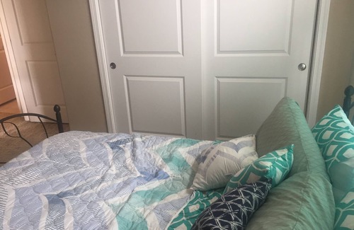 Lovely room with private bath available with private owner. Light and bright it has a queen size bed, flat screen tv, large closet, big window. It is upstairs so climbing required. The private bath has a shower, tub, large vanity.