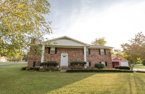 Come stay in the heart of Cleveland TN. spacious single family home. 4 bedrooms, 3 full baths. 3000 sq ft. upstairs includes, kitchen with granite counters. living room, dining room, seating 8. Sun room seating 6. hall bathroom with bathtub. master bedroom with, TV, king bed and bathroom with walk-in shower. two additional bedrooms with queen beds and roll-away in each closet. Downstairs, large family room with smart TV. new bathroom with laundry and bedroom with queen bed. fenced in back yard.