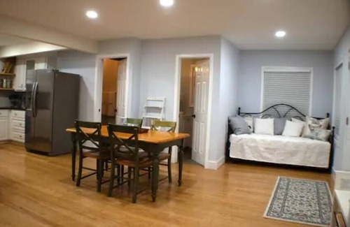 This cozy guest cottage has a welcoming and peaceful farmhouse theme. A 900 sq foot studio with newly renovated bathrooms (1.5), you can relax between adventures or just curl up and retreat from the world. With a charming little kitchen equipped with a wide range of cooking equipment you can enjoy a peaceful night in with a homemade meal and then curl up on the sofa with a blanket and read a book or watch a movie. The cottage is equipped with a half bath in addition to the full bathroom so that those traveling in groups are never inconvenienced. The garden is full of butterfly friendly plants and explodes with flowers in the spring and summer. The patio is equipped with both lounging and dining furniture as well as a small multifunctional grill that can be used for charcoal grilling or as a fire pit when weather permits.