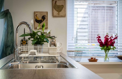 Step through the kitchen door into a warm and welcoming open-plan kitchen and dining area, thoughtfully equipped with everything you need for a comfortable and enjoyable holiday. The modern kitchen boasts a full-sized fridge freezer, dishwasher, washing machine with a pull out clothes line in the garden, or a clothes dryer under the stairs, and an ample inventory of utensils, cutlery, and cookware—perfect for preparing everything from quick snacks to elaborate meals. Gather around the large, six-seater dining table and enjoy hearty conversations and delicious home-cooked meals together in a convivial setting.