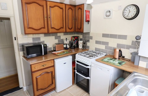 Amenities: Gas central heating. Gas oven and hob, microwave, fridge-freezer, dishwasher, TV with Freeview and WiFi. Fuel and power inc. in rent. Bed linen and towels inc. in rent. Stairgate available. Off-road parking for one car and roadside parking on a first-come, first-served basis. Enclosed rear lawn and patio garden with furniture. Two well-behaved pets welcome. Sorry, no smoking. Shop 2.1 mile, pub 0.1 miles. Note: Dogs to be kept on the ground floor. Note: Reversing onto the drive is advised as it is situated on a bend in the road. Note: Entrance area has a low ceiling with large beam that runs through rest of the property, please take care