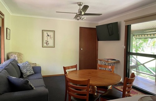 Rose Cottage has a fully self contained kitchen, bathroom and laundry. The main bedroom features a queen bed and the second bedroom has a double bunk and single bed. Air conditioning and gas heating as well as electric blankets, doonas and blankets are supplied.