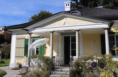 Located in the spa gardens historical villa "Rosenvilla", from the 19th century, renovated. In a central, sunny position. Private: park 1'700 m2 with beautiful garden to relax. Supermarket 200 m, restaurant 100 m, pedestrian zone 200 m, bus stop "541,546" 130 m, railway station "Bad Ischl" 1 km, thermal baths "Eurothermenressort Bad Ischl" 800 m. Golf course (18 hole) 6 km, tennis 3 km, cable car 5 km, ski lift 21 km. Nearby attractions: Stadtmuseum Bad Ischl 30 m, Kongress- und Theaterhaus Ischl 50 m, Franz Lehar Filmtheater 500 m, Kaiservilla 900 m, UNESCO Welterbeort Hallstatt 21 km. Well-known ski regions can easily be reached: Feuerkogel Ebensee 20 km. Well-known lakes can easily be reached: Wolfgangsee 13 km, Attersee und Traunsee 19 km. Hiking paths: Nussensee, Katrinalm, Postalm. Please note: not suitable for children under 10 years. The keys‘ handover takes place by the agency SKGT Touristik in Götzstr. 12, 1 km. Neighbourhood highly sensitive to noise. Quietness and good behaviour expected. The castle has been completely restored and is furnished with original furniture. There is a pavilion In the big Biedermeier garden with a fountain. You will be living in the heart of unique countryside whilst at the same time enjoying the exciting leisure activities of a charming town.