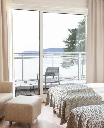 This hotel is next to Rosfjord, 1.2 mi from central Lyngdal. It offers free Wi-Fi and free access to the sauna, hot tub and pools at Sørlandsbadet. The fresh and modern guest rooms at Rosfjord Strandhotel feature a mini-bar, work desk and cable TV. Some include a terrace or balcony with sea views. Strandhotel Rosfjord offers a variety of in-house dining options. A children’s playground, large garden and barbecue area are on site. A number of hiking trails are found in the surrounding area. Attractions such as Lista Beaches and Dyreparken Zoo are within a few minutes’ drive. Free private parking spaces are found next to the hotel.