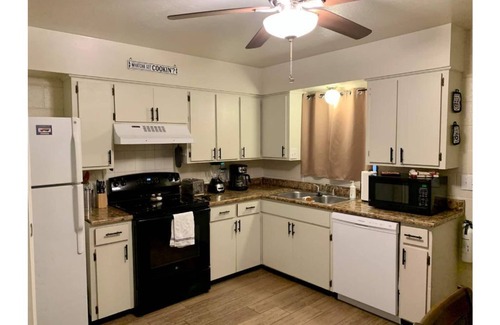You will have the entire apartment as your private sanctuary for a restful nights sleep, snacks, or meals you choose to prepare in the well-outfitted kitchen, or just relaxing with the remote control surfing the channels on the 4K smart TVs. Directly across the street is our grassy City Park where you can enjoy a covered picnic table while grilling some burgers and hot dogs on the provided charcoal grills, while the kids play tag with lots of room to run.