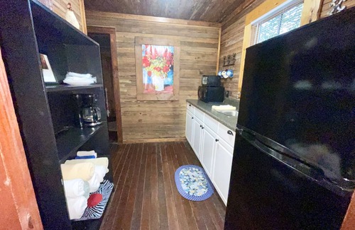 The Row Cottages are 2 bedroom and 1 bath. There is a kitchenette.