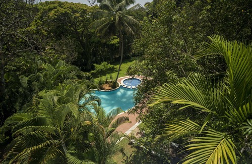 An outdoor pool and a children's pool are on site. Other recreational amenities include a steam room and a fitness center.