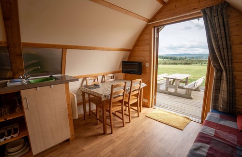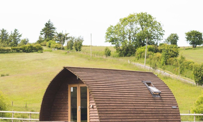 Seven en-suite glamping cabins line the edge of the pretty farm. Each one has its own outdoor private dining area with views across the countryside to the majestic mountains. Inside, the cabins are insulated and fully fitted for everything you need for a relaxing stay in the mid-Wales countryside.