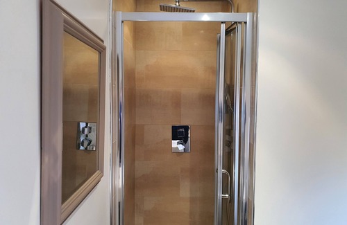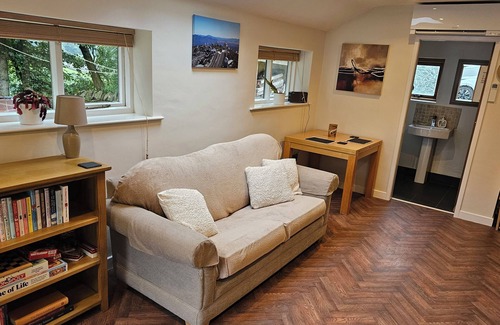 The annex is air conditioned throughout and comprises of: The living room is open plan with a small kitchenette. There is a sofa, a 40" tv with freesat and a small multifuel stove. There is a dining table with 2 chairs which could also be used as an office space.