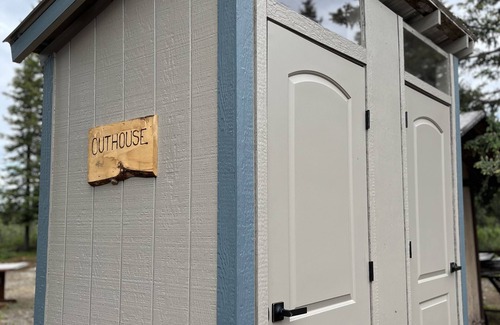 Enjoy our “off grid” camping experience. We have a cozy queen mattress and plenty of blankets to cuddle up in our 12’x14’ wall tent. You will find the propane heating stove adds a warm welcome on those cool Alasakan days and nights! The campground does have power with a charging station available should you need to recharge things. There isn’t any direct power to the tent site, however, we do have solar lights set up for when that midnight sun finally rests. We provide water in the tent for your convenience and will have breakfast items for you in the on-site cooler.