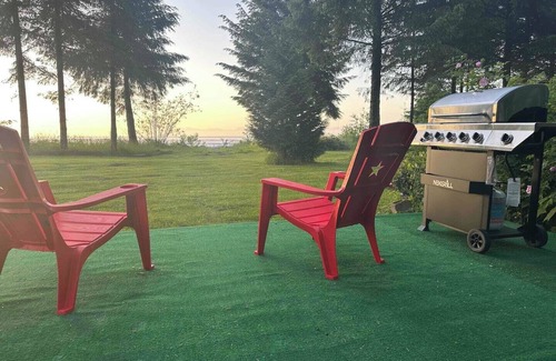 Guests have full, private use of The Happy Eagle beach house, including the interior living space, private deck with outdoor seating, and gas grill. You'll also have access to our shared park-like grounds and private beach, just 50 feet away across the lawn. Free parking is available on-site for vehicles or trailers. Kayaks and paddleboards may be available for guest use on a first-come basis. The beach and outdoor areas may be shared with a few other guests staying on the property.