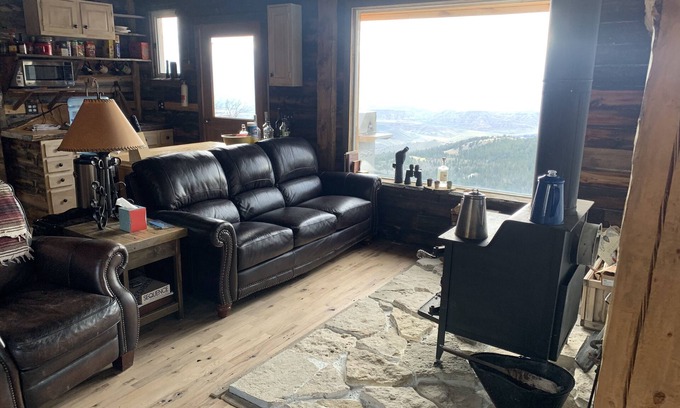 This is a one of a kind cabin. Secluded high up in the Rocky Mountains, but still close enough to Dubois (9 miles) to go enjoy the town. The cabin is beautifully built like no other. Cabin is close to Yellowstone Park, Teton Park, Jackson Hole and Dubois. Cabin took 3 years of custom work to finish. This is not your typical log cabin kit build. Cabin is completely done in barn wood from Wyoming and reclaimed materials. Two bedrooms with a full bathroom with a large walk in custom shower. Million dollar views of the valley and snow peaked mountains. Sit out on the large deck and enjoy the wild life. Moose, Elk, Mule Deer, Fox, Black Bear, Brown Bear, all frequent the area. This cabin is one of the highest in elevation in the state at 9000 feet. Recommended a 4x4 or AWD to get to it, but when dry a regular car will make it up there. Cabin is heated by a wood burning stove, which also provides a great atmosphere for sitting on the couch and enjoying the quiet serenity of the mountains. Cabin is equipped with pots, pans, plates, bowls and all cooking utensils. Also has a large grill for cooking, and full fridge for food storage. If you’re a fisherman/woman the fishing is 10 minutes from the cabin along with other great fishing holes in the area. Enjoy the stars like no other place in the country with almost zero light pollution. Cabin has two bedrooms, a large plush leather couch and leather recliner fit for sleeping along with five cots for extra people or kids. Cabin has a smooth WIFI system and also provides Uno, playing cards, Sequence, a fun family board game, and fishing poles for all guests including kids (will need to provide tackle). Once you’ve stayed here you’ll keep coming back.