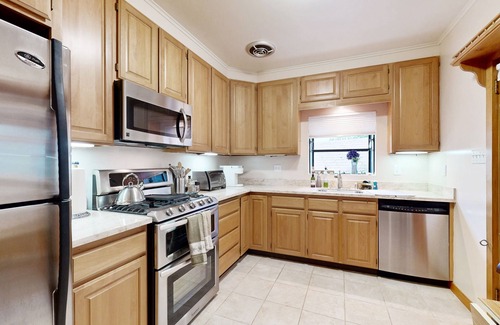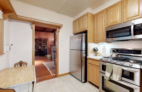Most everything inside this wonderful home has been updated including new hardwood floors, kitchen tiles, blinds, and more. Prepare all your favorite dishes in the well-equipped, full kitchen complete with a suite of stainless steel appliances to make meal prep a breeze! Dine together or play board games at the nearby dining table, and then relax in the main living area where you can enjoy forest views through multiple windows while you stream all your favorite TV channels using your own accounts.